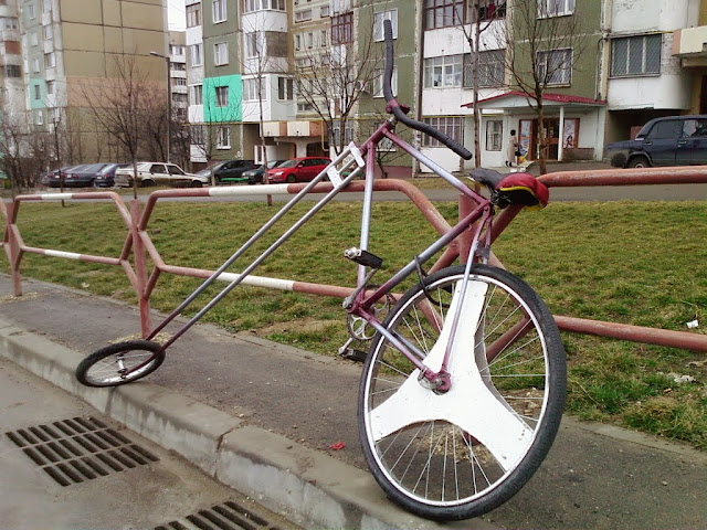 ха, я в прошлом году такой аттракцион на Черном море видела! только там еще чтоб ехать вперед - педали нужно было крутить назад! Я хозяину говорю, что это обман, никто не сможет так проехать и 1 метра, а он сел … и проехал!