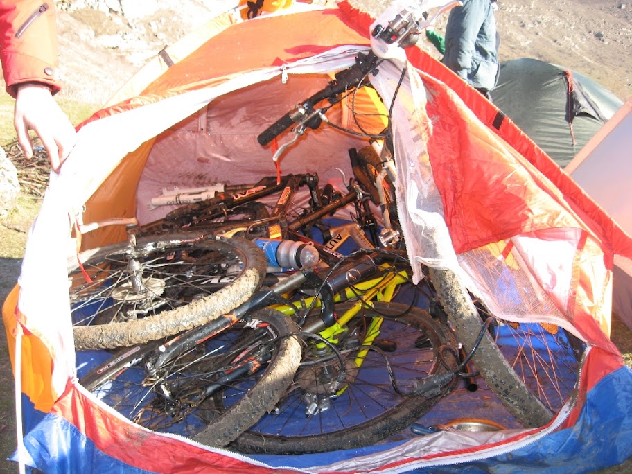 И в неё сложно уложить велосипеды и выходить из палатки, не убившись о какую-нибудь звезду, т.к. выход только один - через большой тамбур.