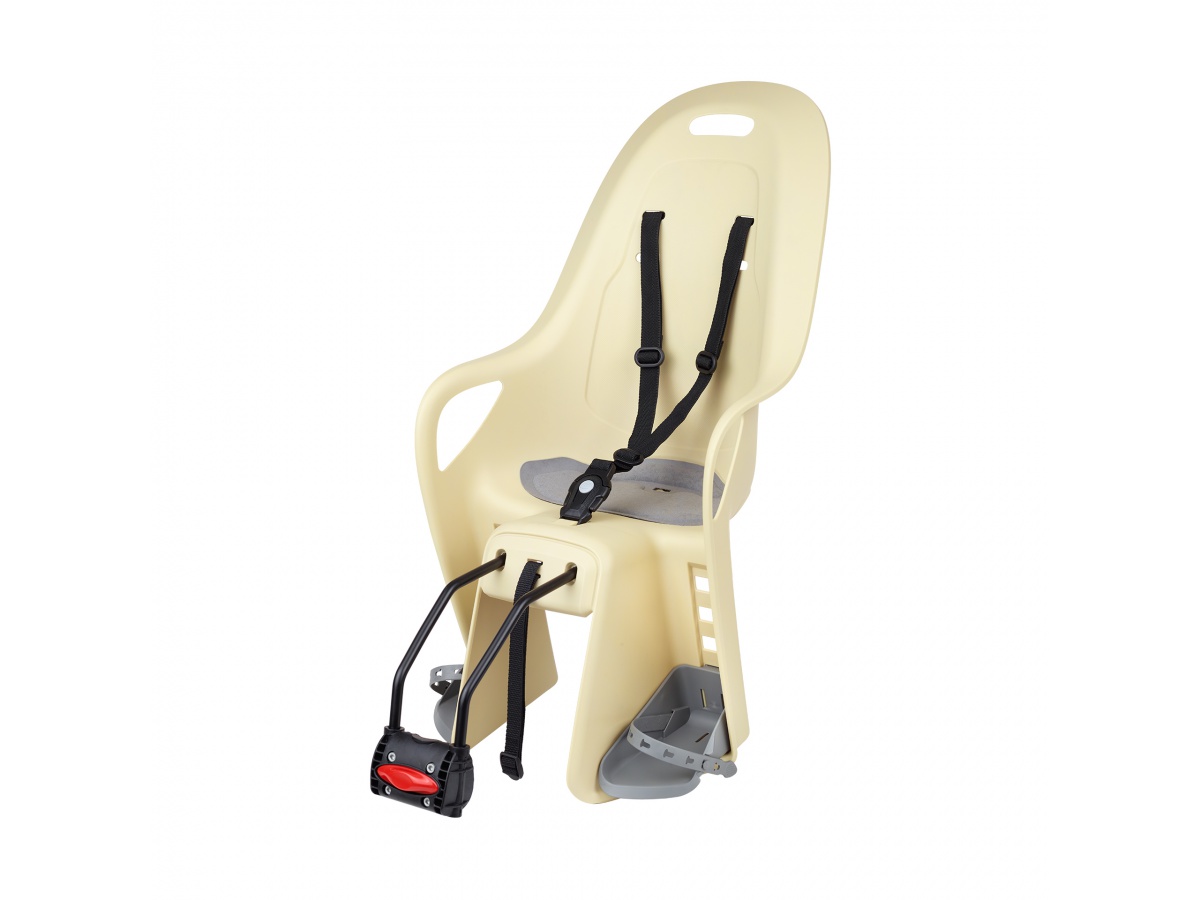 Scaun pentru copii cu suporturi reglabile pentru picioare, sistem de hamuri în trei puncte conceput pentru a ține copilul în siguranță, pernuță de scaun detașabilă. Suport special pe tubul cadrului tijei de șa pentru asamblarea și dezasamblarea rapidă a scaunului. Capacitatea maximă de încărcare a scaunului: 22 kg.Ghid de instalare video